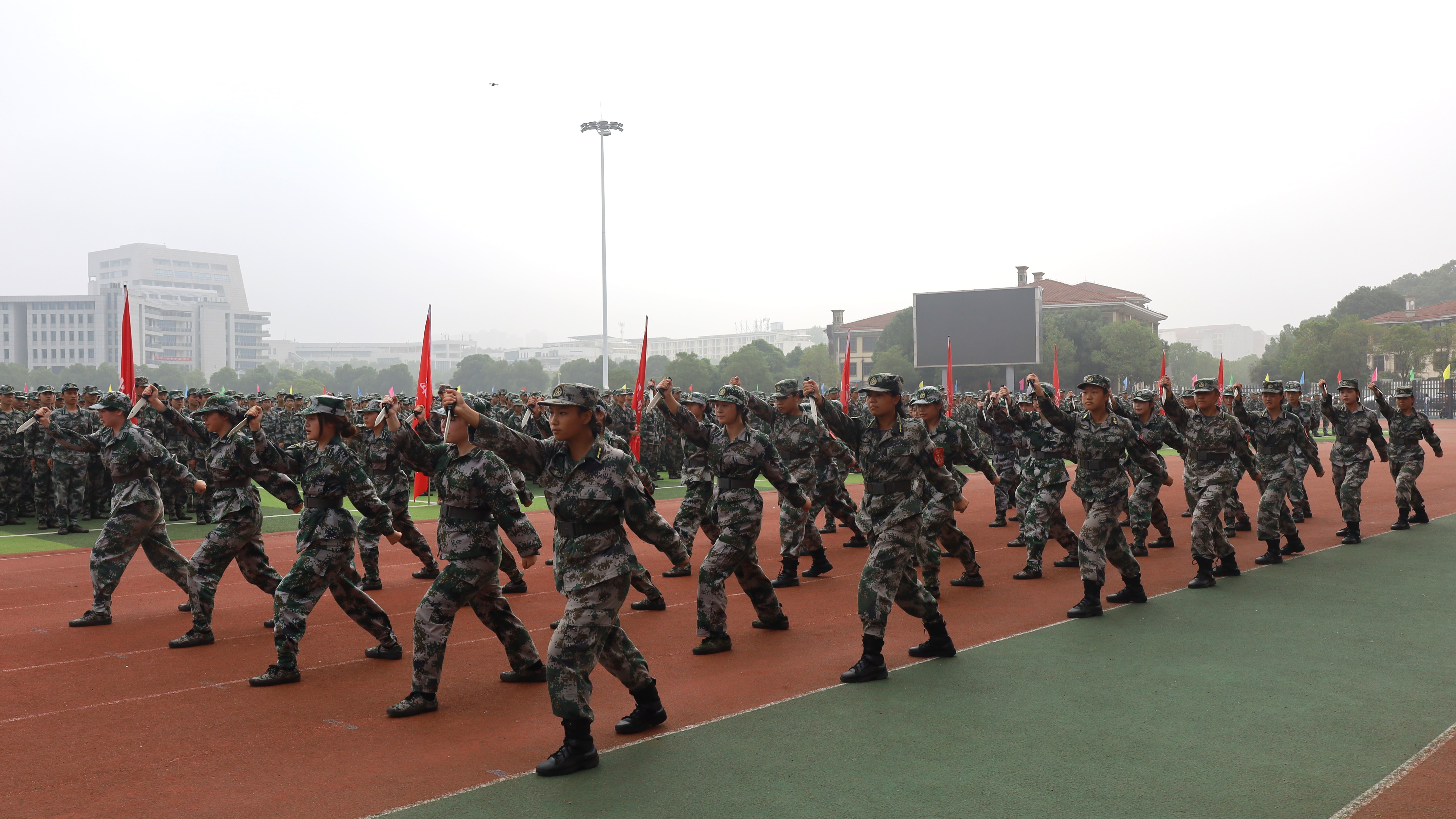 “全体起立,升国旗,奏国歌!”伴随着庄严肃穆的国歌,新生军训总结仪式正式启幕。仪式现场,气势昂扬的擒敌拳、教官展示的刺杀操与匕首操依次上演,体育学院带来的啦啦操表演同样精彩,为仪式增添活力。随后,新生们在分列式进行曲的节奏中整齐有序走过主席台,展现出军训成果与昂扬风貌,迈向新的成长征程。