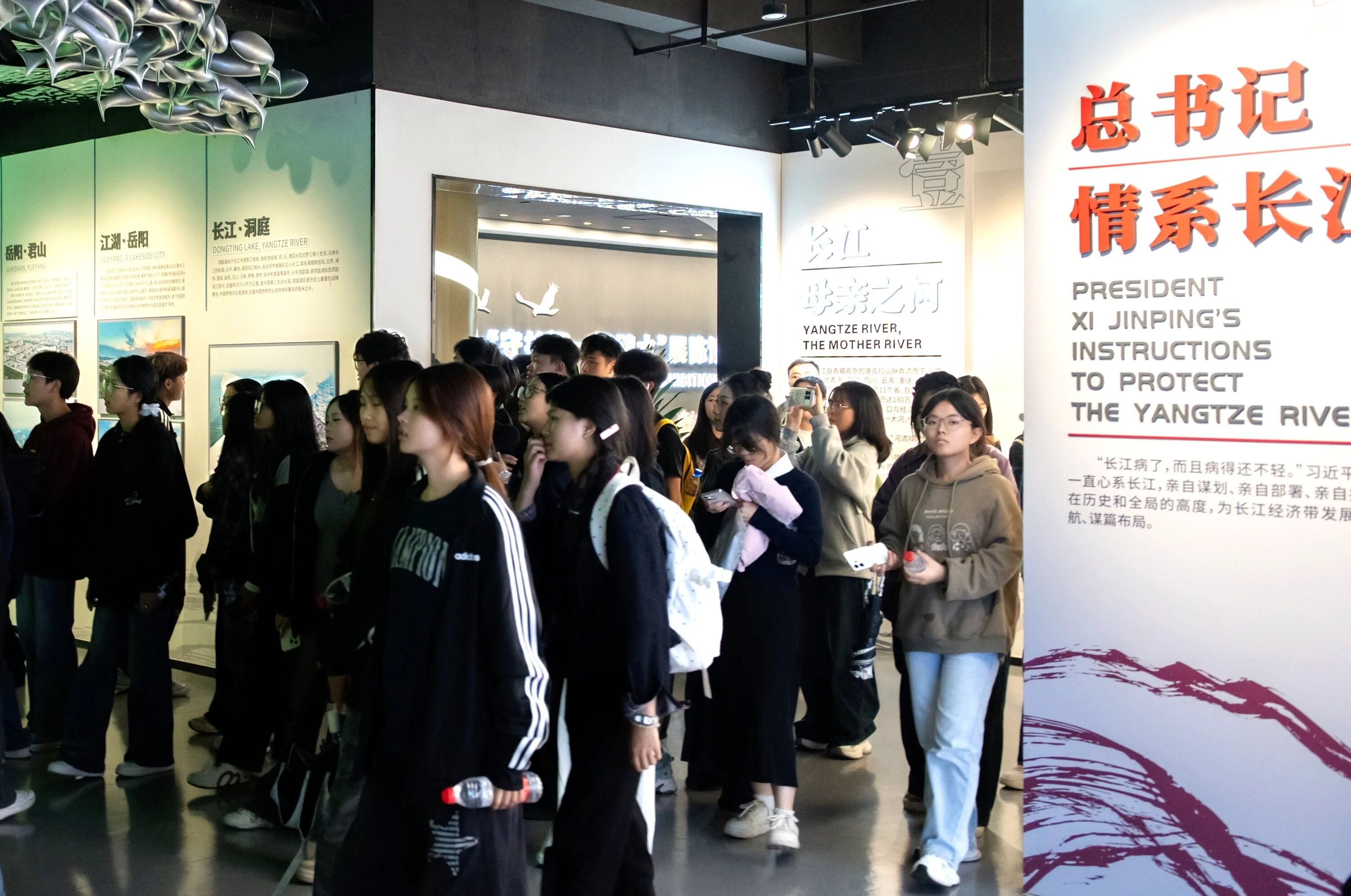 学校2025级新生“开学第一课”在君山区“守护好一江碧水”展陈馆开讲