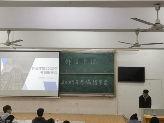 校园网讯 3月2日晚,为了帮助大家了解考编内容与流程,拓宽未来职业规划的选择渠道,外语学院在8T1教室举行考编指导会。活动邀请了具有丰富考编经验的李嘉晟、包戴炜学长分享考编经验,对考编感兴趣的外语学院学生参加本次指导会。
